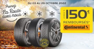 Du 03 octobre au 29 octobre 2022, jusqu’à 150€ remboursés* pour l’achat de pneumatiques de…